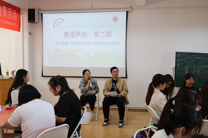 为深入了解青年学生生涯发展规划,探索更多职业可能,4月9日中午,外国语学院在38号楼一站式学生社区团辅6号教室举办“青语声坊·第二期|职业剧本杀:在角色觉醒中解锁生涯答案”主题活动。外国语学院2022级辅导员肖景文、2023级辅导员兼“笃行”生涯发展工作室成员卢天赉以及50余名各类学生代表参加此次活动。活动由周悦悦主持。
