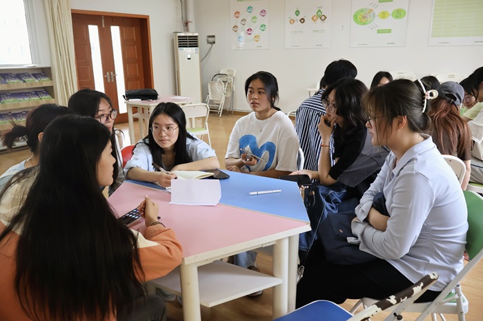 在分组讨论环节,来自不同年级和专业的学生代表根据未来生涯发展规划共划分为5组,每组设置一个讨论主题,分别为“就业”“考研”“留学”“考公”和“考编”。