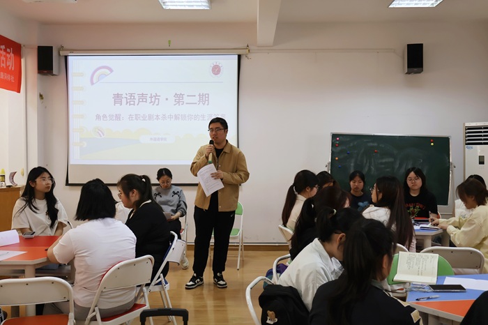 为深入了解青年学生生涯发展规划,探索更多职业可能,4月9日中午,外国语学院在38号楼一站式学生社区团辅6号教室举办“青语声坊·第二期|职业剧本杀:在角色觉醒中解锁生涯答案”主题活动。外国语学院2022级辅导员肖景文、2023级辅导员兼“笃行”生涯发展工作室成员卢天赉以及50余名各类学生代表参加此次活动。活动由周悦悦主持。