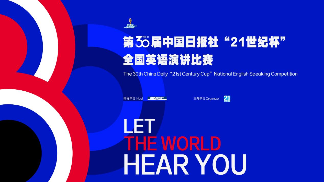 “21世纪杯”全国英语演讲比赛高举习近平新时代中国特色社会主义思想伟大旗帜,全面贯彻落实党的二十大精神,为提高中国青年讲好中国故事的能力水平,为加强我国国际传播能力建设、促进文明交流互鉴、推动构建人类命运共同体凝聚青春力量。