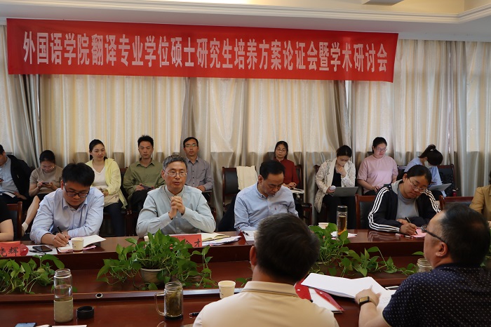 5月13日下午,外国语学院在外语楼210会议室召开翻译专业学位硕士研究生培养方案论证会暨学术研讨会,在会议第二阶段,召开了学术研讨会。会议邀请扬州大学原副校长、教育部高等学校大学外语教学指导委员会副主任委员、全国翻译专业学位研究生教育指导委员会委员俞洪亮教授,教育部“长江学者”特聘教授、国家社会科学基金重大项目首席专家、南京大学杨金才教授为与会人员做学术报告。外国语学院有关领导、全体硕士生导师及中青年科研骨干参加会议。会议由外国语学院院长张鑫主持。