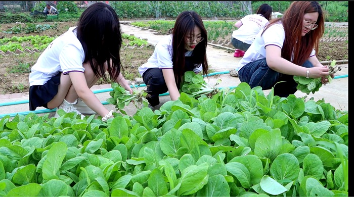 在劳动实践环节,团员青年走进农场,通过“知识课堂+田间体验”的模式深化学习,让青春在泥土的芬芳中淬炼出别样的青春底色。农场负责人讲解农作物生长周期、土壤养护及生态循环知识,结合农产品卡片进行展示,帮助青年理解现代农业的科学性与可持续性。随后,团员分组开展蔬菜采摘、育苗松土等劳动体验。此时,教科书里的“奋斗箴言”和思政课的“初心使命”在这一刻具象化了,这场突破课堂边界的实践教学,让理论在泥土的芳香中萌发新芽。