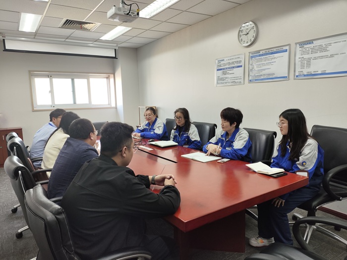 了解学生实习动态,精准对接企业用人需求,326日上午,外国语学院党委副书记兼副院长李晓曼、副院长杨国萍、日语系副主任疏蒲剑、2025届毕业班辅导员陈凌峰、就业指导员卢天赉赴安川(中国)机器人有限公司走访调研