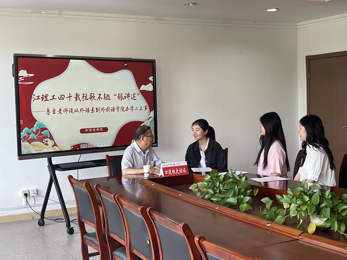 为庆祝学校办学40周年,深入挖掘学校历史底蕴,传承校园精神文化,外国语学院开展了“口述校史”访谈活动。5月20日,学院邀请校老科协外院工作站负责人、校离退休党工委“银讲汇”成员、外院退休教授鲁吉参加访谈活动。