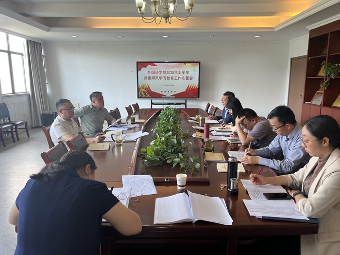 2025年5月26日,外国语学院在50号楼210会议室召开师德师风学习教育工作部署会。学院党政领导和党委委员参会,会议由党委书记王毅主持。