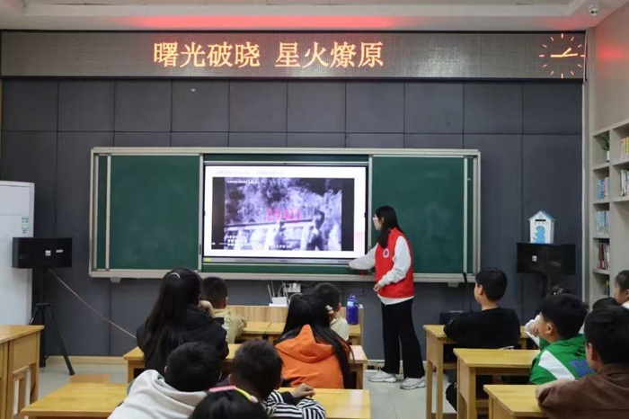 活动伊始,志愿者用生动的讲述,带领同学们回溯中国共产党的光辉历程,加深了青少年对党的认同感与归属感。一段段珍贵的历史影像资料,将革命征程中的关键转折点生动展现,让同学们对党的发展有了更直观、深刻地理解。