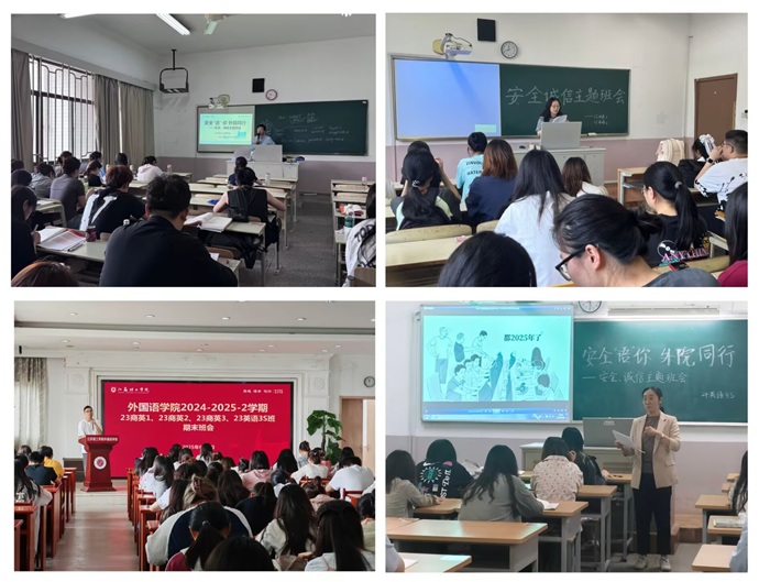 为提升学生安全防范意识,强化诚信自律观念,近日,外国语学院各班级陆续开展“安全‘语’你,外院同行”主题班会。全院学生参与活动,内容涵盖财产、反诈、人身、消防、食品五大安全领域,通过真实案例学习,防诈技巧讲解和诚信考试教育,将安全知识融入日常生活。