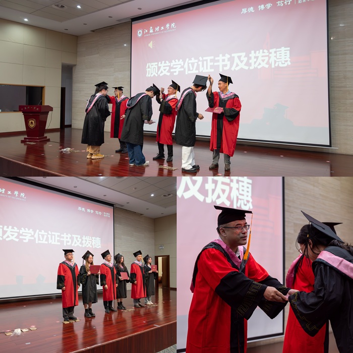 王毅、张鑫、张德福三位教授为毕业生逐一拨穗授位。当帽穗从右至左轻轻拨正,这一仪式不仅象征学术传承与责任交接,更是对求学旅程的加冕。