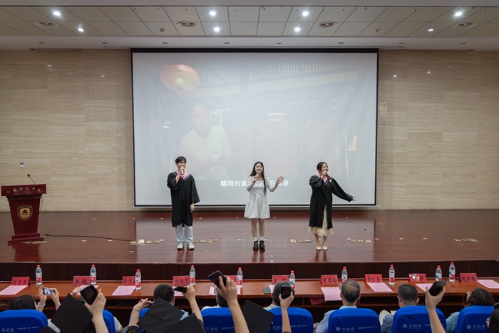 毕业典礼在庄严的国歌声中正式拉开帷幕。微视频《岁月如歌,未来可期》缓缓播放,记录了从2021年初遇的青涩到毕业的从容,一帧帧画面,串起校园时光的珍贵碎片。