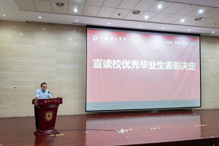 杨国萍宣读了2025年校优秀毕业生的表彰决定,并向校优秀毕业生颁发了荣誉证书。证书上的烫金字样,是对四年拼搏的最高礼赞;台下的掌声,是师生同窗间最真挚的祝福。