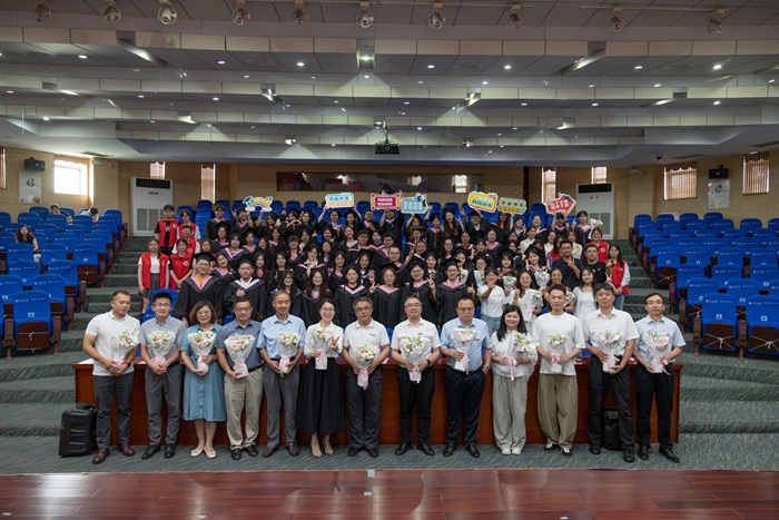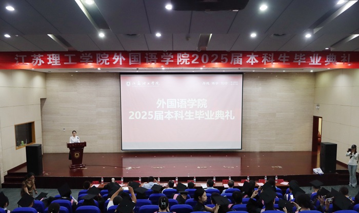 6月19日下午,外国语学院2025届本科生毕业典礼暨学士学位授予仪式在图书馆北报告厅举行。外国语学院党委书记王毅、院长张鑫、党委副书记兼副院长李晓曼、副院长李世存、副院长杨国萍,学院各系部负责人、外教代表、全体辅导员、毕业班班主任、学生代表以及毕业生家长等欢聚一堂,共同见证这喜悦与感动的重要时刻。典礼由李晓曼主持。