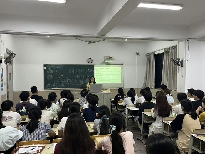 班会在温馨融洽的氛围中展开。各班班主任热情欢迎新生加入外院大家庭,从历史沿革、师资力量、专业设置等,详细介绍各专业情况。学风建设是此次班会的重点,各班班主任围绕外语专业特点,介绍大学阶段的主要学习任务与修读要求,鼓励新生尽快确立学业目标、制定合理计划,期望新生遵守校规校纪,以勤奋刻苦追求卓越,在学术道路上稳步前行。