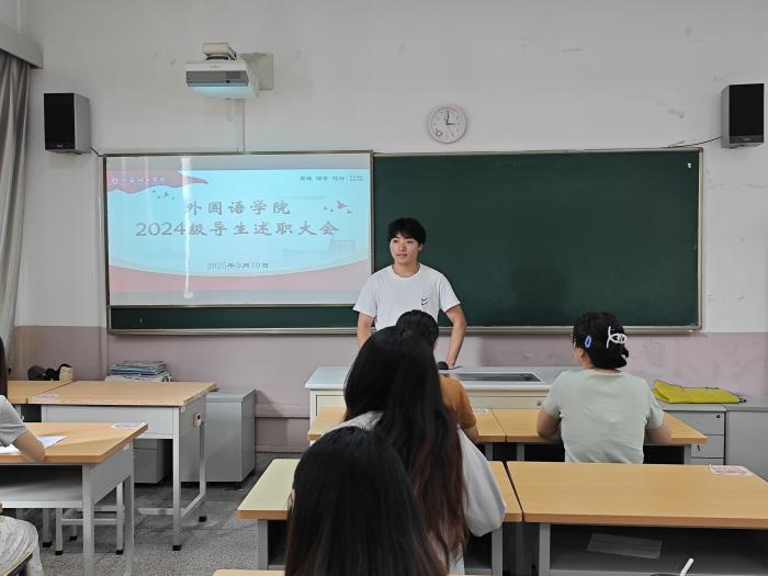 此次述职大会不仅是一次工作的总结与考核,更是一次经验的交流与智慧的碰撞充分展示了我院导生队伍良好的精神风貌、高度的责任感和卓越的工作能力,为提升人才培养质量奠定了坚实基础。未来,外国语学院将继续加强导生队伍建设,完善工作机制,贯彻落实朋辈引领,不断凝聚学工团队合力,共同书写学生成长成才新的篇章。(图/梅容容 文/迟蓉)