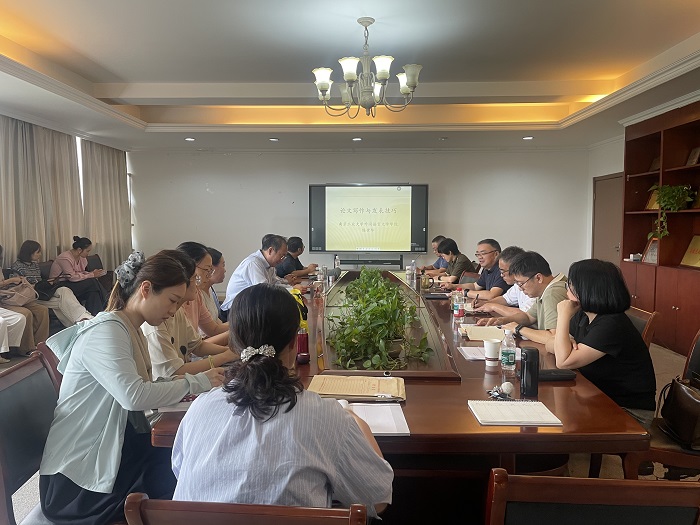 9月24日上午,外国语学院在外语楼210会议室举办“学术论文写作与发表技巧”专题讲座,邀请南京工业大学外国语言文学学院院长陈世华教授担任主讲嘉宾。讲座由外国语学院院长张鑫主持,学院党委书记书记王毅、副院长杨国萍、部分教师代表、2025级翻译硕士学生代表参加讲座。