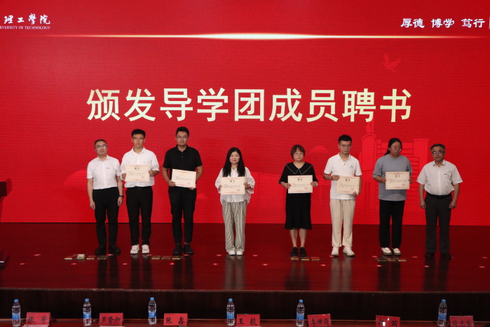 作为创新班级管理模式的举措之一,外国语学院今年增设由班主任和导生组成的导学团,全方位为新生的学习生活提供支持和服务。现场,学院党政领导分别为导学团成员颁发聘书。
