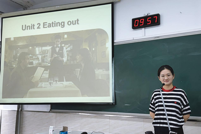 邢雪明主讲《商务英语口语》公开课,围绕“Eating Out”这一典型商务社交场景展开教学。课程以“如何完成一次得体的外出就餐”为任务主线,引导学生从辨析“eat out”与“eat outside”的细微差别入手。热身环节通过趣味绕口令活跃课堂氛围,并针对性纠正发音。在核心教学阶段,教师以开放式提问启发学生思考,系统讲解“总分总+分类拓展”的表达框架,帮助学生构建逻辑清晰的应答能力。过程中,她巧妙融入课程思政元素,通过中英文菜单的翻译对比,引导学生理解中西方文化在集体与个体观念上的差异,实现语言能力与文化素养的协同培养。课程最后设置情景模拟环节,学生分组扮演顾客与服务人员,在高度仿真的点餐与交流场景中进行实践。教师全程巡视,及时在语音语调、用语规范及文化禁忌方面给予指导,有效确保了语言输出的准确性与情境适应性。