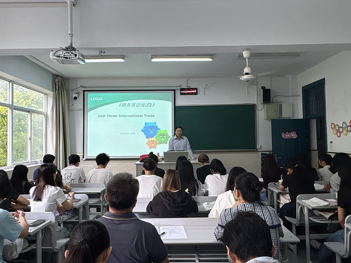 赵静主讲《商务英语阅读》公开课,围绕“International Trade”单元展开系统教学。课程以启发性预读问题导入,有效激活学生知识储备。在泛读教学环节,通过段落主旨归纳、长难句解析与核心词汇讲解,帮助学生构建完整的阅读认知体系。教师在每个教学模块后适时进行归纳总结,引导学生建立从语篇分析到知识内化的学习路径,切实提升了学生的商务文本解读能力与信息整合素养。