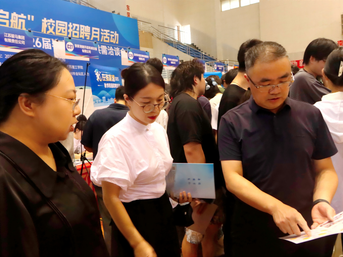 10月11日下午,江苏理工学院“金秋启航”2026届毕业生供需洽谈会在校体育馆隆重举行。外国语学院院长张鑫、党委副书记兼副院长李晓曼亲临现场,学工办主任刘宇宁、副主任陈子薇、毕业班辅导员肖景文就业指导员卢天赉2026届毕业生参与了此次活动。