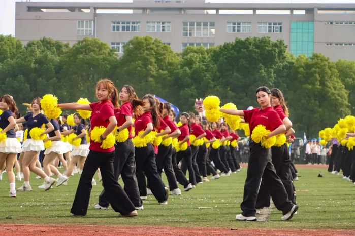 啦啦操队员们身着鲜艳服装,手执金色花球,动作整齐划一,笑容自信灿烂,向大家传递出新时代大学生的青春和活力,将激情与欢乐传递给现场的每一个人。在全体队员们的辛勤付出下,我院啦啦操表演一枝独秀,荣获第一名的傲人成绩。