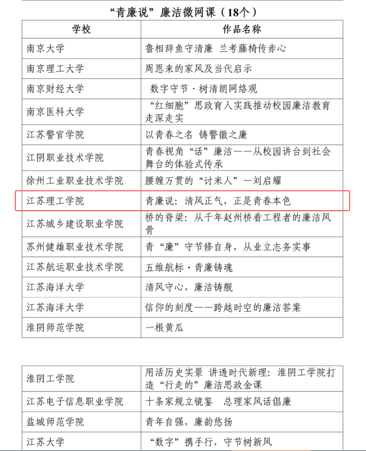 附件:江苏省第十届高校廉洁教育系列活动推荐作品和案例公示名单