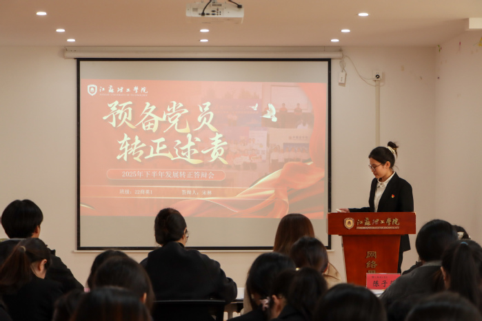会上,预备党员梅容容、宋林作为示范答辩代表首先发言,她们分别汇报了预备期内思想、学习、实践方面的成长与反思,并阐述了转正后的规划。在答辩环节,评委就责任担当、学以致用等话题提问,两位预备党员结合自身经历进行了回答。