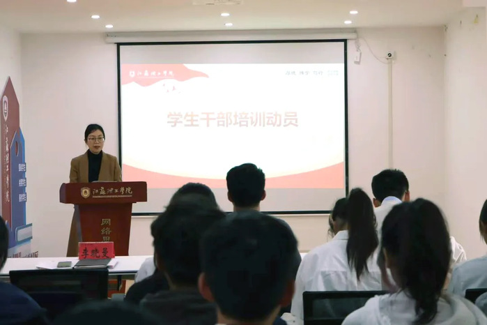 首先,外国语学院党委副书记兼副院长李晓曼进行学生干部培训动员讲话。她首先对新任的学生干部表示欢迎,鼓励大家练就过硬本领,增强学子担当。李书记强调,作为领头雁、组织者和服务者,学生干部在工作中应努力打造品牌特色,既要保质保量地完成各项工作,又要将“信、达、雅”的专业要求迁移到平时的工作中。第一,以信为本,做思政声音的传播者。学生干部应当准确地传达学院消息通知,真实地反映学生需求,做好学院和同学之间的传声筒。第二,以达聚力,做班级粘合的助力剂。学生干部们要善于沟通,高效落实学院工作,在潜移默化中凝聚人心。第三,以雅润心,做文化传播的践行者。学生干部要不断创新工作方法,以美育人,将“雅”的思维融入到工作中,营造有温度的文化氛围。