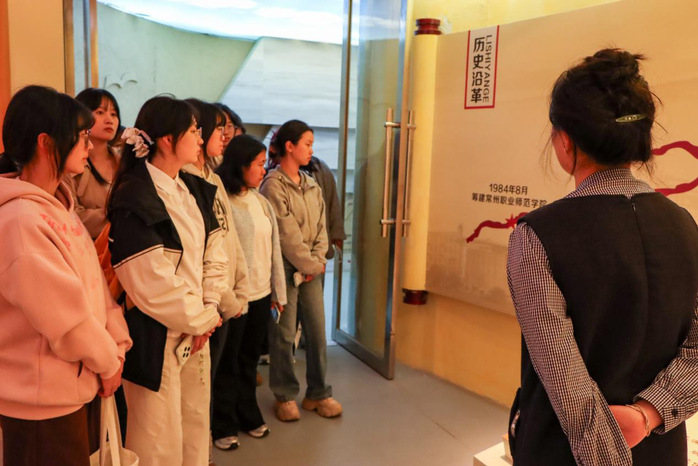 学院发挥英语专业优势,组建由翻译硕士、省级英语竞赛获奖者构成的核心团队。成员们以精准翻译+通俗表达为原则,对校史馆解说词进行本土化翻译与跨文化改编:不仅系统梳理学校从1984年常州职业师范学院创办至今的三次更名、两次合并的发展脉络,更将学校有特色、专业有特点、学生有特长的办学思路,转化为符合英语表达习惯的叙事逻辑。结合情景化讲解,讲解员用英语模拟国际交流场景介绍中德国际学院合作成果,用中文搭配英语关键词解读工匠精神的内涵,既保证了英语表达的规范性,又让讲解像英语角活动般生动,现场俨然成为听得懂、记得住、用得上的双语校史课。