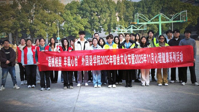 为推进宿舍文明建设,加强大学生文明修养,2025年11月22日下午外国语学院联合机械工程学院、汽车与交通工程学院通过线上线下两个渠道开展“语械相契,车载心怡”宿舍文化节活动。本次活动由外国语学院学生会权益服务部、大学生心理健康服务部外国语学院分部、机械工程学院学生会权益部、汽车与交通工程学院学生会自律会及汽车与交通工程学院心理协会五个部门共同承办。