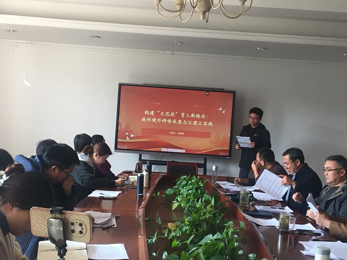 孔奕、李雨恒、居勰、王艳梅、赵秀莲老师分别做题为《数字时代高校教师教学领导力的重塑与提升》、《构建“大思政”育人新格局:我的境外研修成果与江理工实践》、《国际化教育环境中的大学英语教学模式创新与反思》、《多元文化共生社会的领导力研究》、《基于脑电实验的语言学研究方法》汇报讲座,五位老师总结了各自的研修成果以及回校后的工作计划。