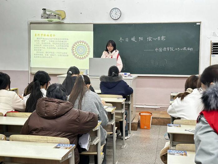 2025年12月5日下午,外国语学院结合“12·5”心理健康日主题,在轻松温馨的氛围中成功举办“冬日暖阳,绘心自愈”心理疗愈活动。“12·5”谐音“要爱我”,寓意关爱自我、悦纳心灵。本次活动正是依托这一重要心理健康教育节点,融合艺术创作与外语表达,引导学生在动手实践中关注情绪健康,学会积极表达与自我关怀。
