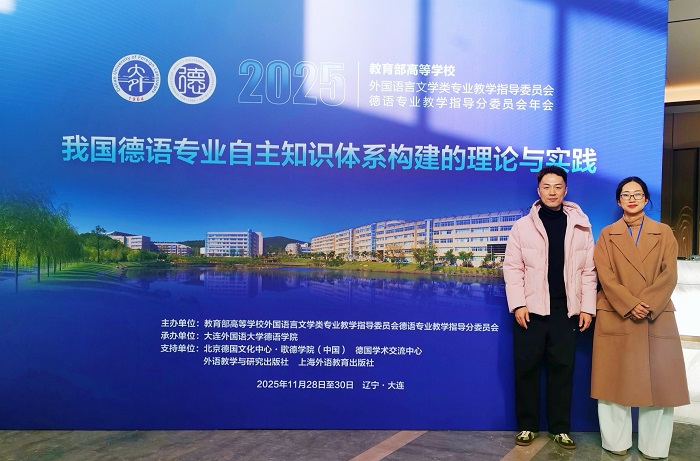 11月28日至30日,教育部高等学校外国语言文学类专业教学指导委员会德语专业教学指导分委员会年会在滨城大连成功召开。本届年会以“我国德语专业自主知识体系构建的理论与实践”为主题,汇聚了全国德语教育领域的众多专家学者,共谋学科发展新蓝图。我校外国语学院德语系系主任闵志荣与副系主任于参加了此次会议。
