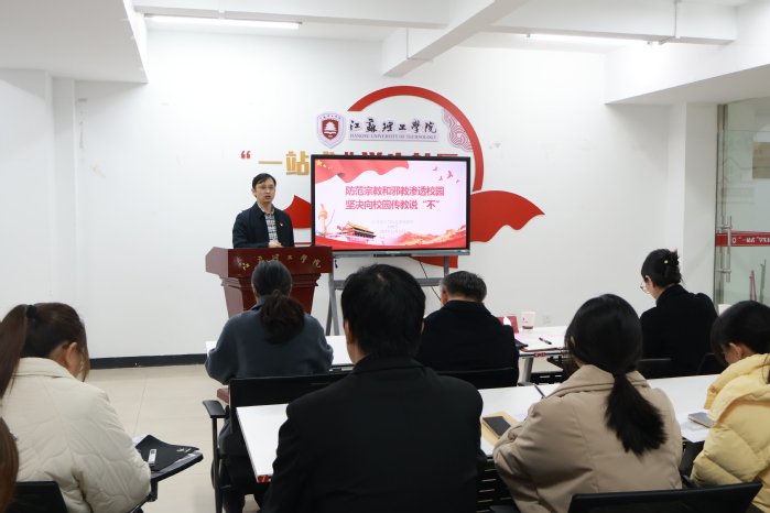 校党委常委、统战部部长刘晓杰以《防范宗教和邪教渗透校园,坚决向校园传教说“不”》为题讲授专题微党课。他结合理论阐释与典型案例,系统解读当前宗教领域的形势,深入剖析校园意识形态工作面临的风险挑战,强调筑牢校园思想防线对维护民族团结与社会稳定的极端重要性。党课内容兼具理论高度与实践温度,发人深省、催人警醒,为师生践行铸牢中华民族共同体意识的实践要求提供了重要遵循。