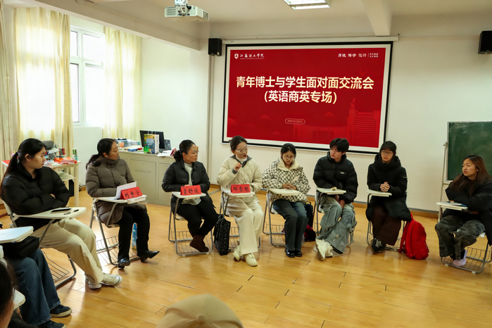 为帮助英语、商务英语专业学生解决学业困惑、激发学习热情,落实学院学风建设“学业筑基、专业赋能、职业领航”的“三业”分类育人体系,12月3日,外国语学院在 38 号楼一站式社区团辅4教室举办了第一期青年博士与学生面对面分享交流会(英语专业、商务英语专业专场)。英语系霍舒缓、商英系邢雪明两位青年博士围绕学业规划、学习方法等话题,分享了实用的经验。院学工办主任刘宇宁参加并主持了活动。