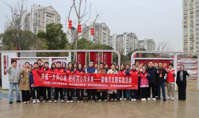 春风催新绿,植绿正当时。在第48个植树节来临之际,为深入践行雷锋精神,铸牢中华民族共同体意识,3月11日下午,“共植一片同心林,籽籽同心向未来”植树活动在常州市钟楼区陈渡新苑红石榴广场温情启幕。江苏理工学院外国语学院携手常州西藏民族中学、常州市教科院附属中学的青年学子齐聚于此,以青春躬身实践,以同心携手同行,播撒绿色希望,共谱团结新篇。